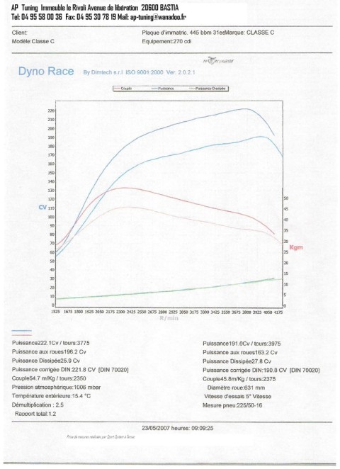 mesure faite sur le banc de puissance 4 RM de Sport System